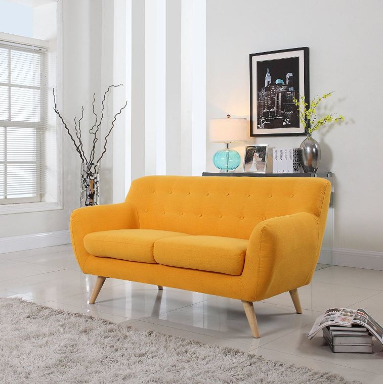 A comfy looks couch that perfect for apartment room. It also has nice color and design. You can consider the couch's pattern and materials that you will place in apartment living room.